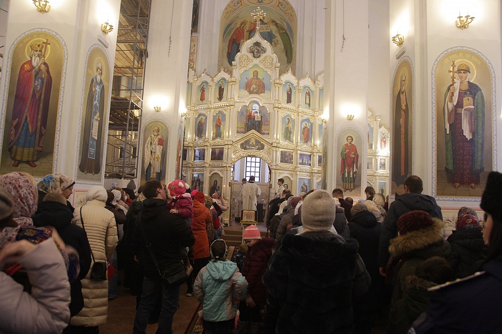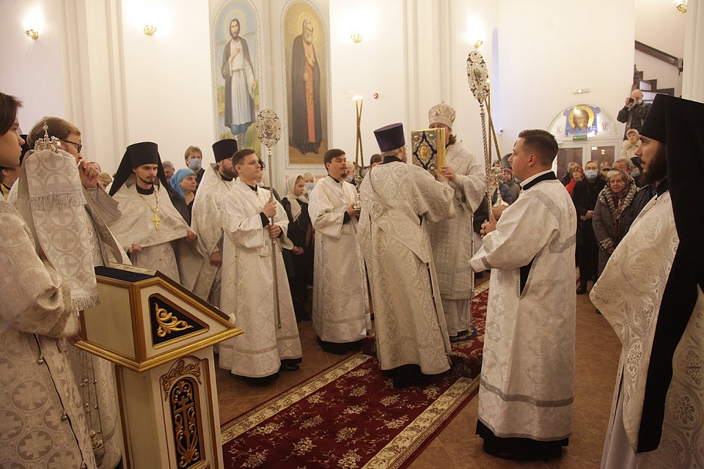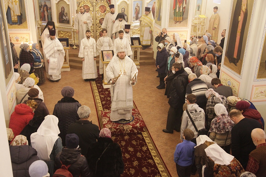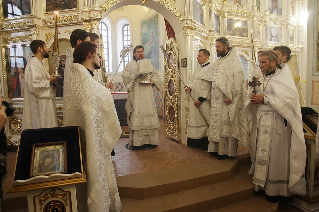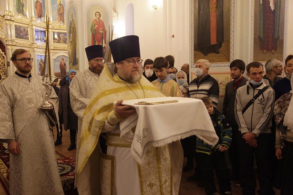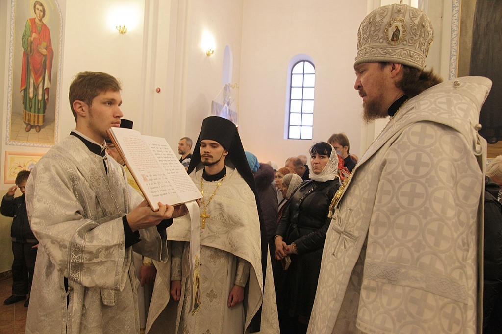 которому сослужили благочинный Миасского округа протоиерей Георгий Крецу, настоятель храма Архангела Михаила протоиерей Виталий Жулин и другие клирики.