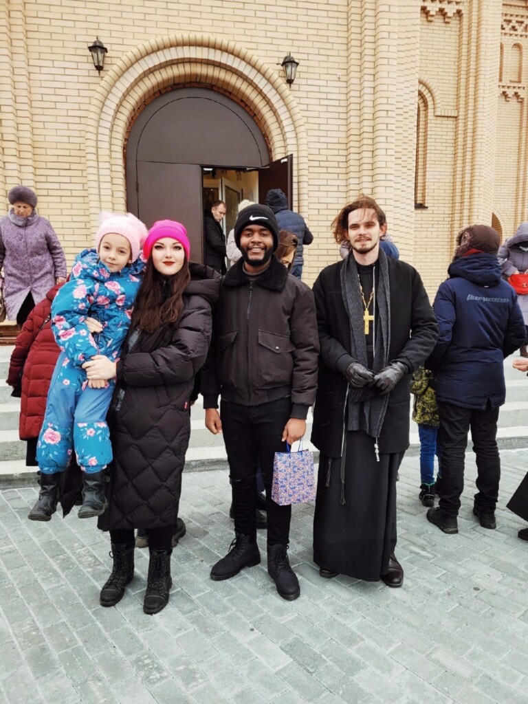 И еще хотелось бы поздравить с первым Причастием Алешандра, гостя нашего города и храма, уроженца Анголы и студента первого курса Челябинского государственного института культуры, который на кануне перешел в православную веру — 20 ноября в Свято-Симеоновском кафедральном соборе Таинство совершил митрополит Челябинский и Миасский Алексий.