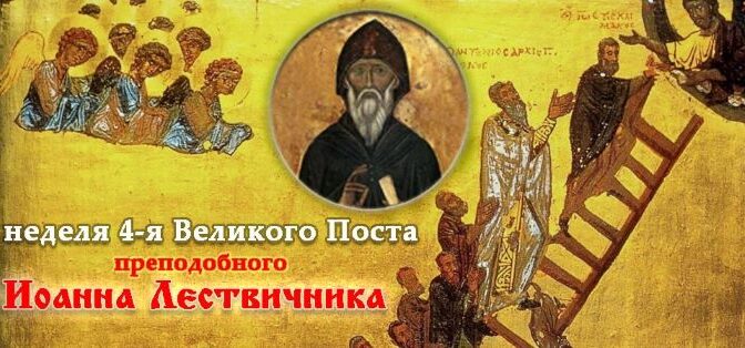 В литургийном Евангелии в воскресный день четвертой седмицы Великого Поста Церковь к утешению и назиданию постящихся, Божественным свидетельством утверждая могущество поста и молитвы, открывшее Иоанну лествицу рая и возведшее его на высоту духовного совершенства, благовествует, что дух злобы изгоняется из человека только молитвою и постом, и вместе предвозвещает приближающуюся радость воскресения Христова (Мк. 17-31).
