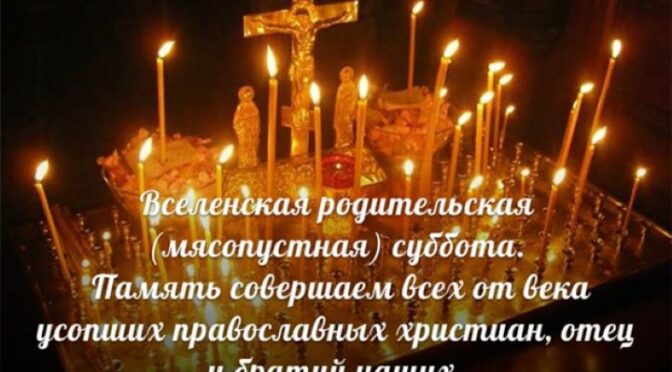 В определенные дни года Церковь творит поминовение всех усопших отцов и братий по вере. Совершаемые при этом панихиды, указанные уставом, называются вселенскими, а дни, в которые совершается поминовение, — вселенскими родительскими субботами. Первая вселенская родительская суббота бывает на Мясопустной седмице, перед началом масленицы, подготовляющей верующих к Великому посту.